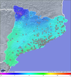 A partir d’aquesta propera matinada, una massa freda començarà a entrar a Catalunya i ens acompanyarà al llarg dels propers dies. Amb aquesta entrada freda, aquesta matinada entrarà vent de nord i originarà el que s’anomena rebuf, és a dir, cap a la costa central els vents giren de mar cap a terra aportant humitat i precipitacions, aquest factor, sumat al xoc de masses d’aire (l’actual més càlida amb la freda) podria originar una matinada i matí de demà de ruixats i, fins i tot, d’alguna tempesta.